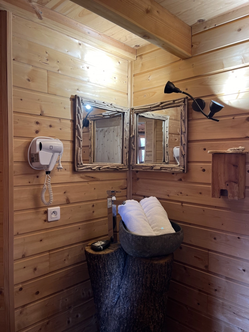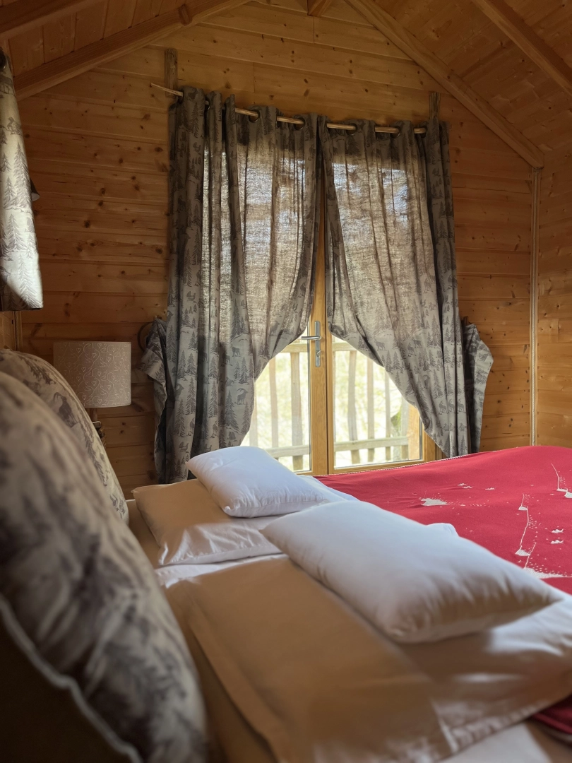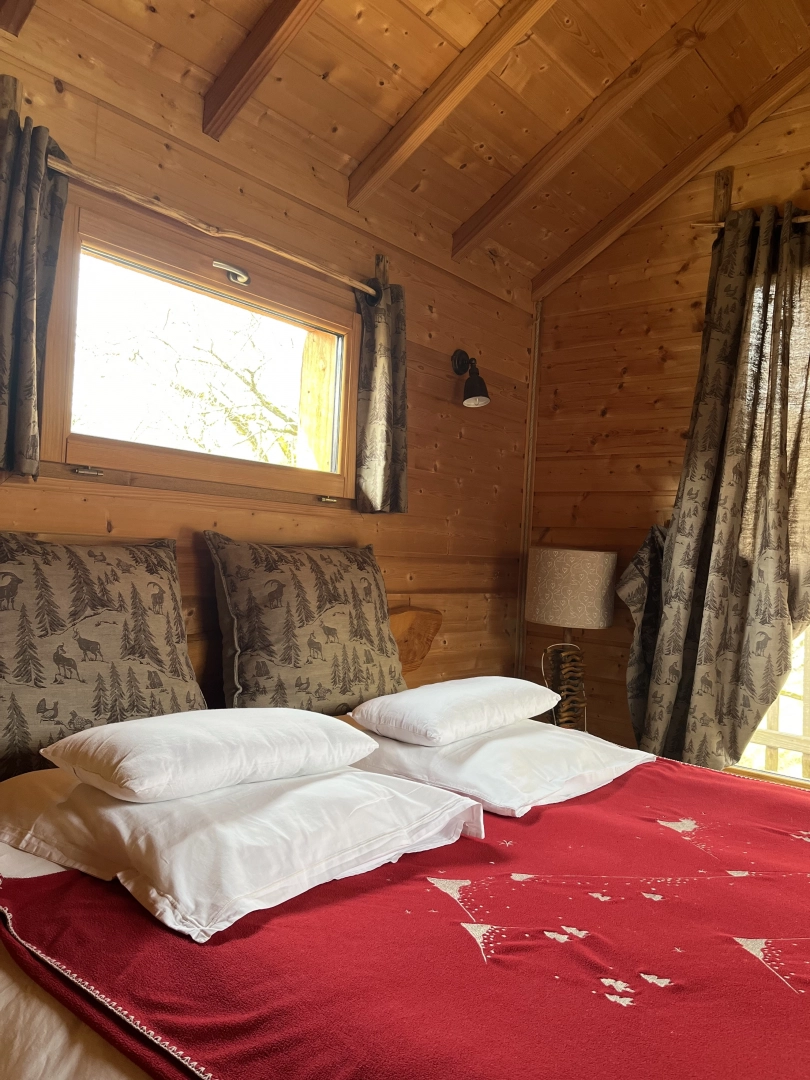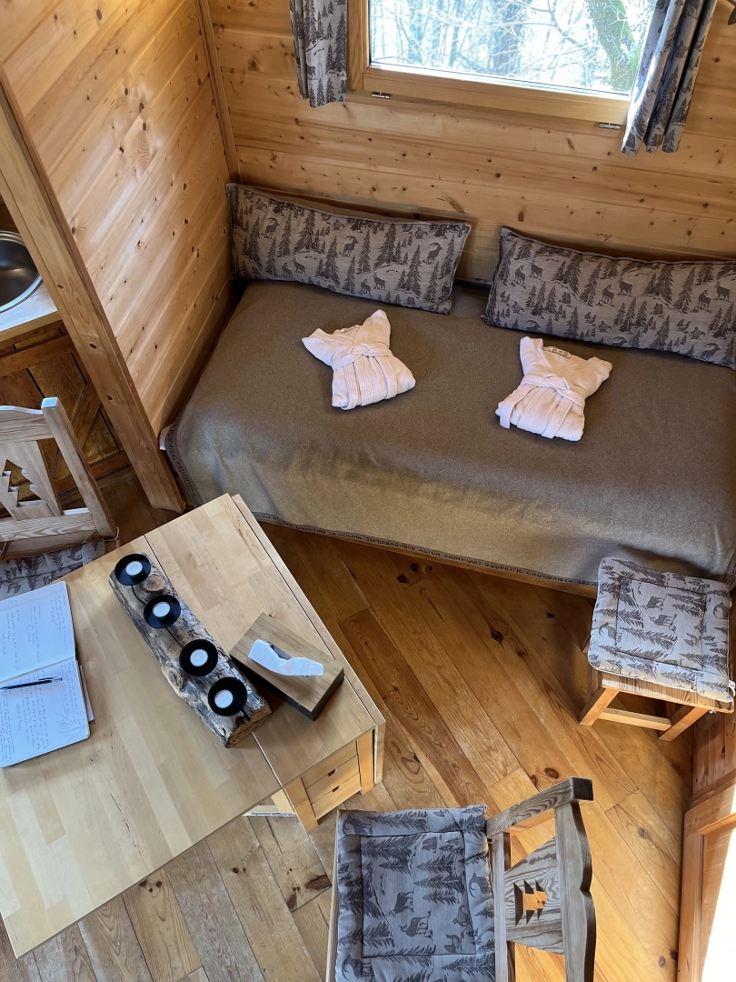 Le plus de cette cabane est le balcon à l'étage, accessible par la chambre, pour se rapprocher un peu plus des oiseaux.