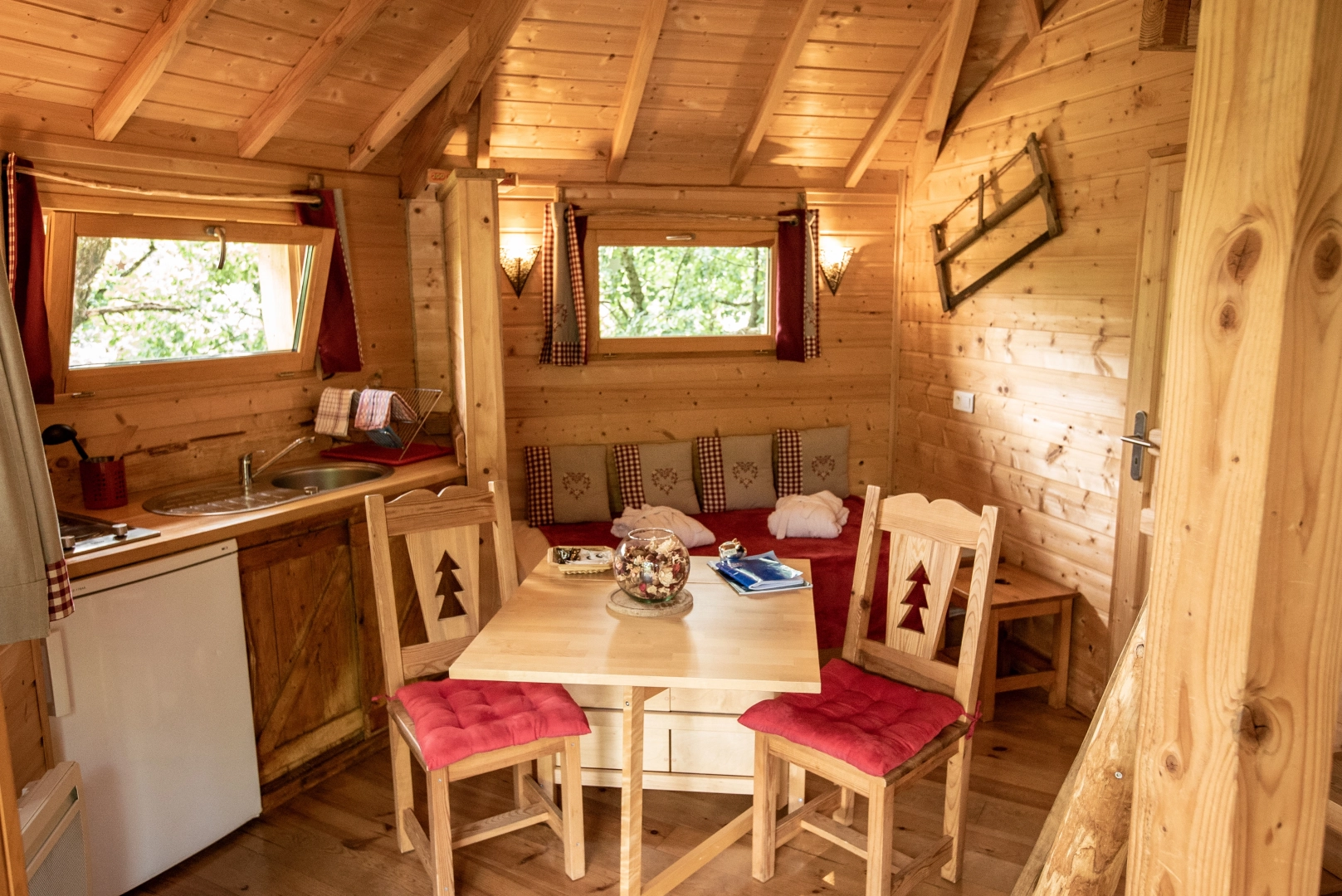 La Cachette est une cabane très cosy qui vous surprendra par sa grandeur (40m2) et la chaleur du bois saura vous accueillir.